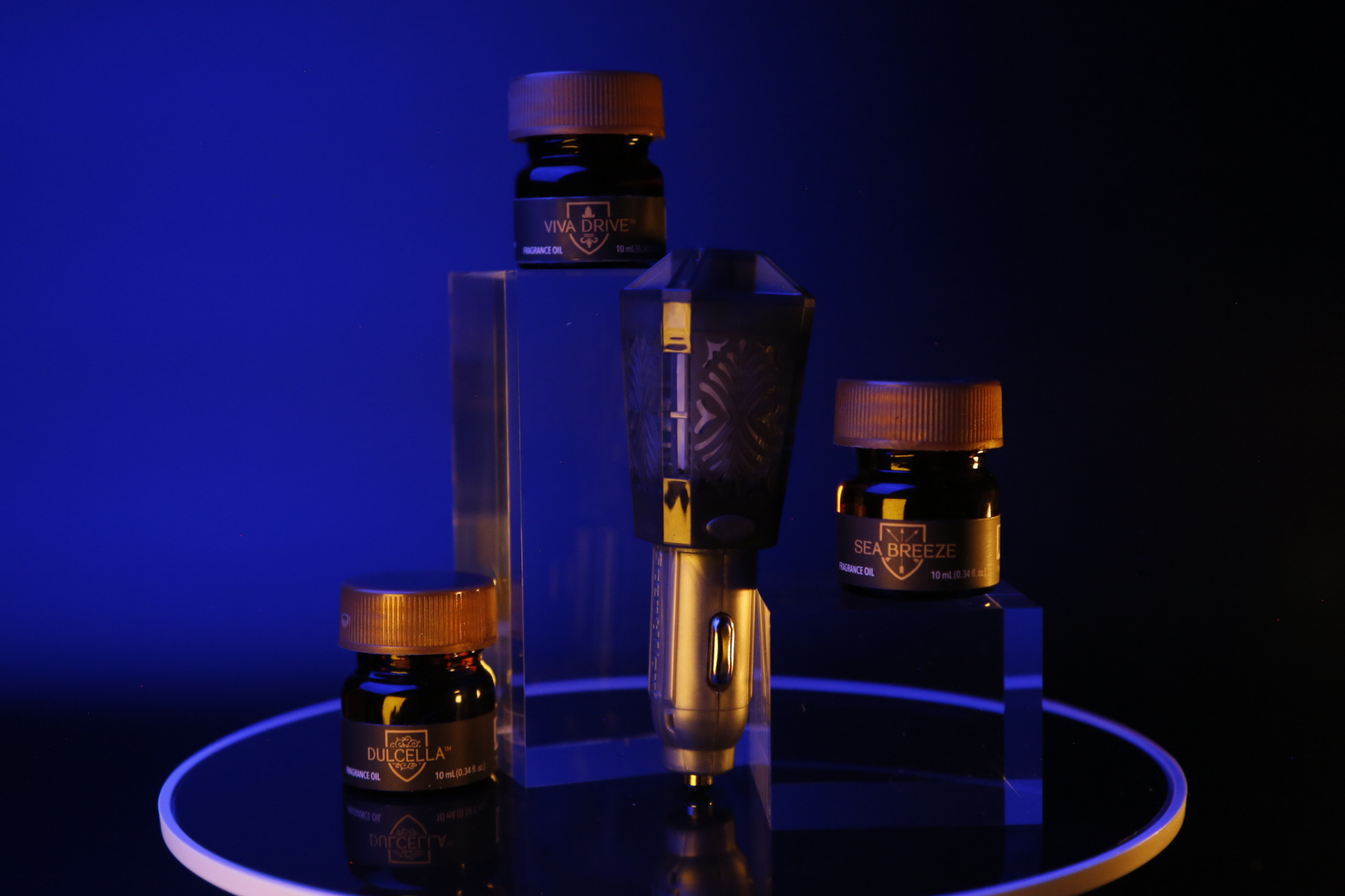 • 3 DriveTime® Fragrance Oils (10 mL each: Dulcella, Sea Breeze, Viva Drive)